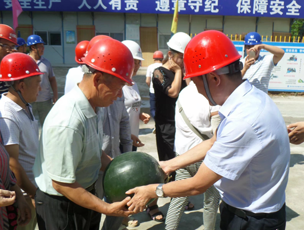 2017年7月13日上午,銅川市住建局副局長郭小放、銅川市新區(qū)管委會副主任張鐵成等相關(guān)人員來到陜西省華源建筑工程有限責(zé)任公司所屬海林御苑項目部,一同慰問在烈日下辛勤勞作的項目部全體員工,并親自為每位員工發(fā)放慰問品。隨后,在陜西省華源建筑工程有限責(zé)任公司總經(jīng)理郝曉兵、海林御苑項目經(jīng)理馮中樓等人員的陪同下,對海林御苑施工現(xiàn)場進行了高溫作業(yè)環(huán)境檢查,要求一定要抓好夏季安全生產(chǎn)工作,杜絕一切安全隱患的發(fā)生,根據(jù)高溫季節(jié)特點,合理安排工人作息時間,落實防暑降溫措施,盡量改善現(xiàn)場作業(yè)人員的工作和生活條件,一定要把安全放在首位。(楊楠)