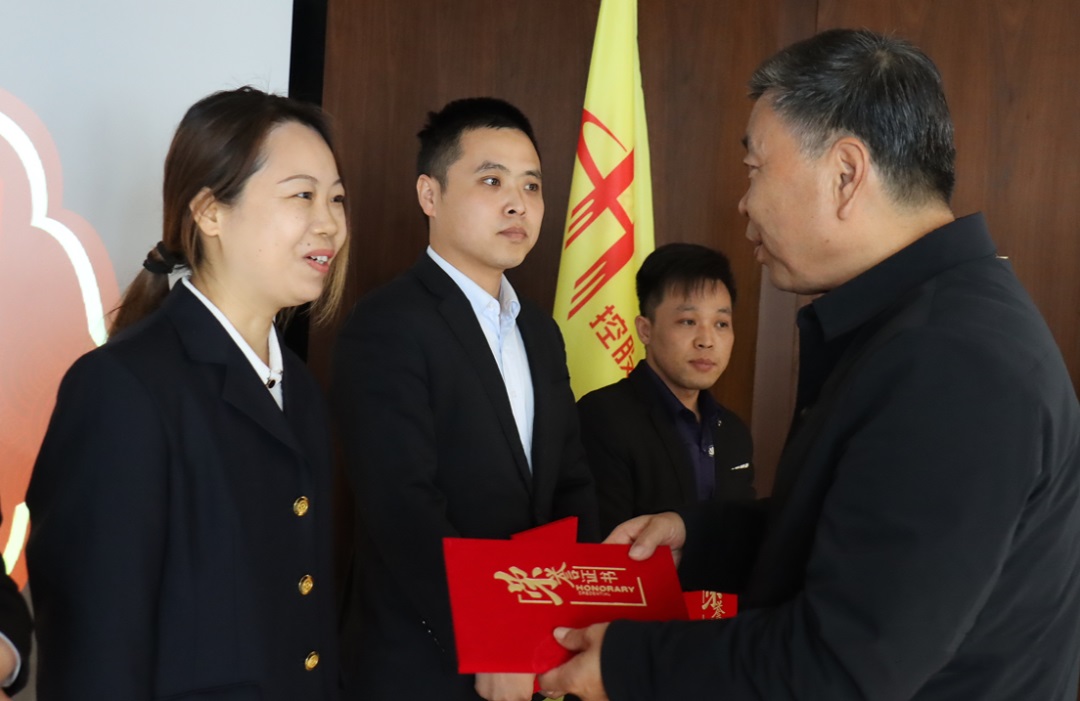 △集團(tuán)董事長魏進(jìn)民給先進(jìn)頒發(fā)榮譽(yù)證書和獎(jiǎng)金